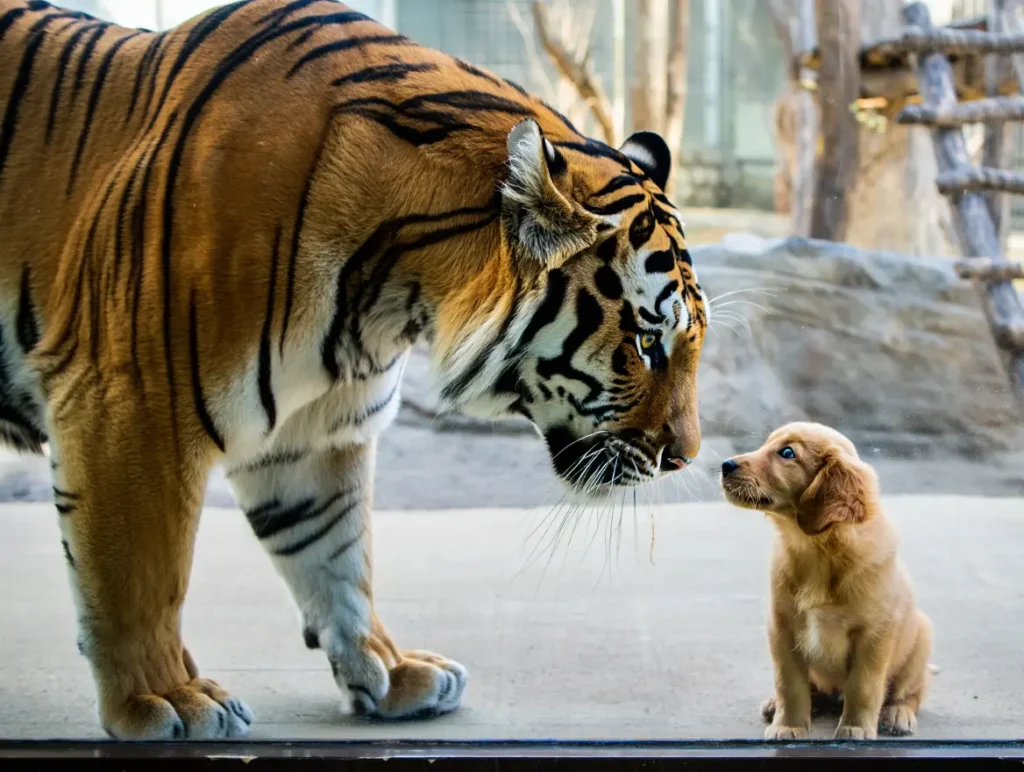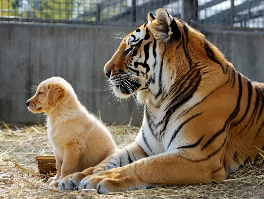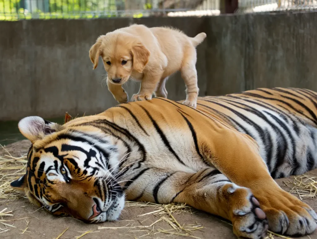 Instead of pouncing, the tiger slowly raised its head and locked eyes with the puppy. The little retriever wagged its tail and walked even closer, as if meeting a new friend. Zoo workers shouted and prepared to tranquilize the tiger.